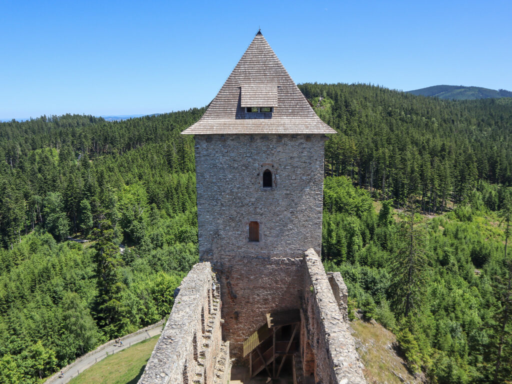 Znáte pohádku Anděl Páně? Pak si jistě vzpomenete i na hrad Kašperk, který se tu v různých scénách ukázal v celé své kráse. Tento bývalý královský hrad stojící v nádherné krajině šumavského podhůří vás okouzlí svou architekturou i výhledy z věží.