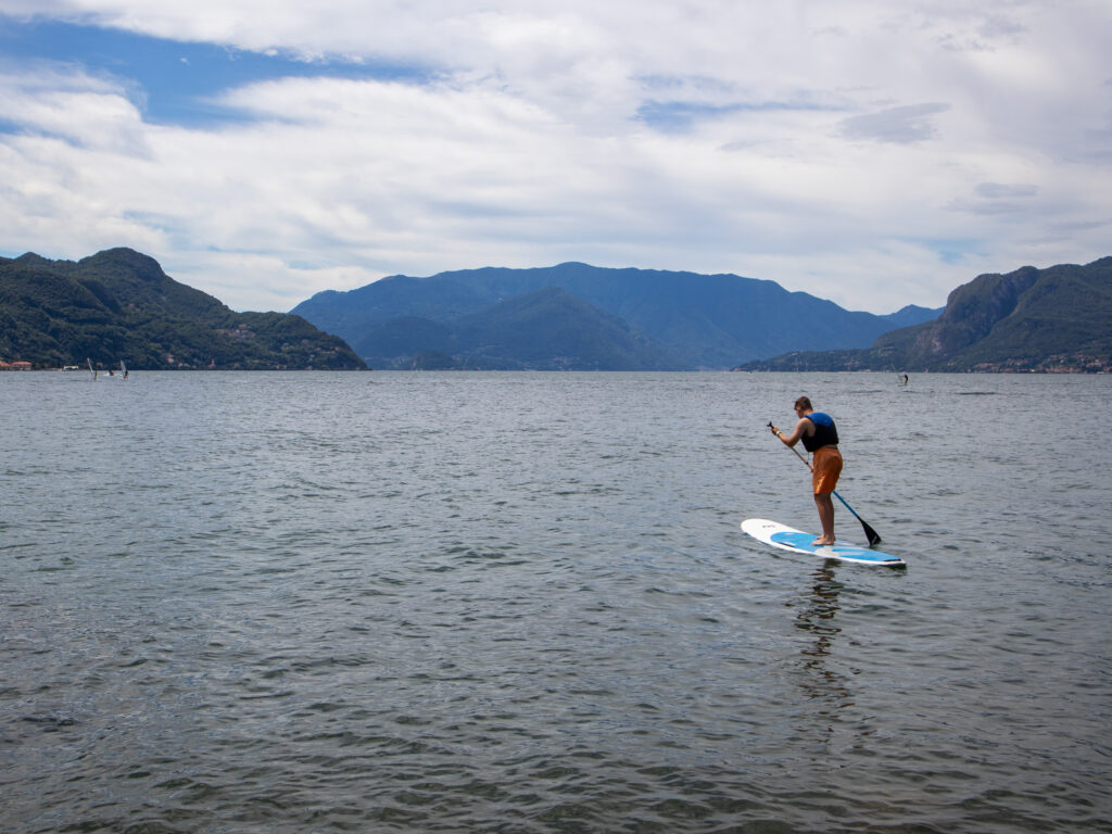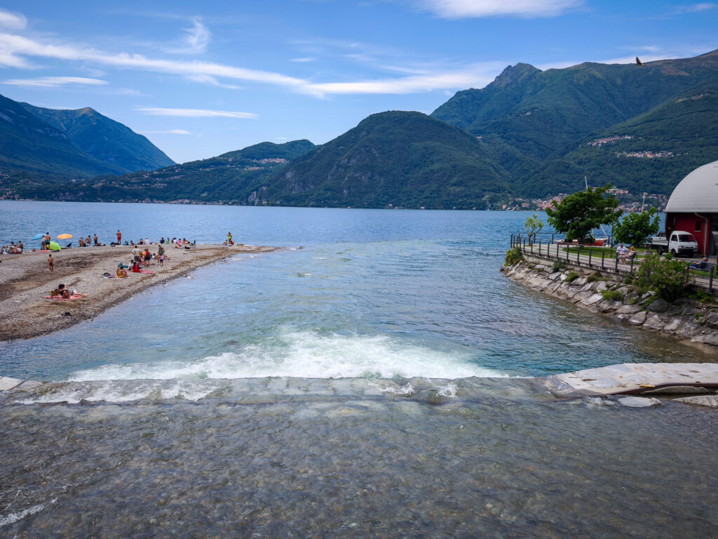 Koupat se v Derviu dá na mnoha místech, stejně tak tu funguje několik půjčoven vybavení na vodní sporty, třeba paddleboarding nebo kitesurfing a windsurfing. Na jižním konci nedaleko přístavu člunů se nachází lákavá atrakce pro děti Ninja splash, velká prolézačka pro větší děti (či dospělé) a nafukovací hřiště pro menší děti (mohou také i větší děti nebo dospělí). My jsme si na koupání oblíbili místo kolem ústí potoka Varrone. Město Dervio jako základna se nám osvědčilo. Tu pravou atmosféru malého jezerního městečka přilepeného na úpatí hor, s úzkými uličkami a nádhernými vilami jako třeba Varrena, sice úplně nemá, zase je tu ale o poznání klidněji.