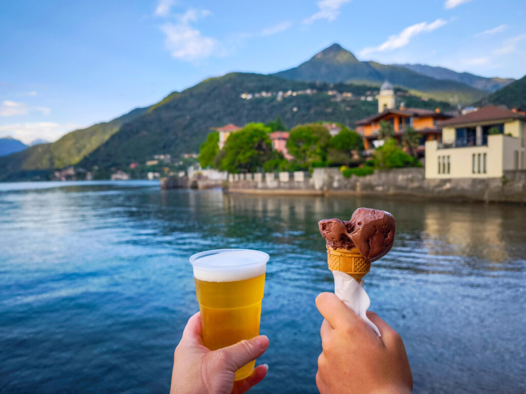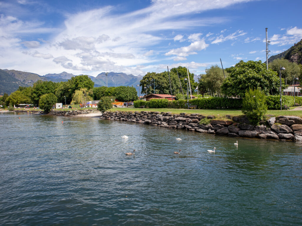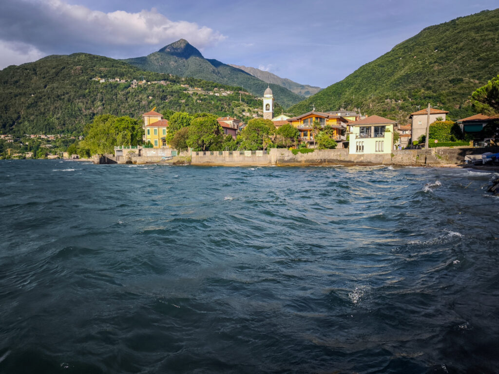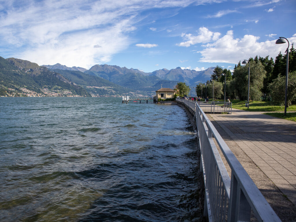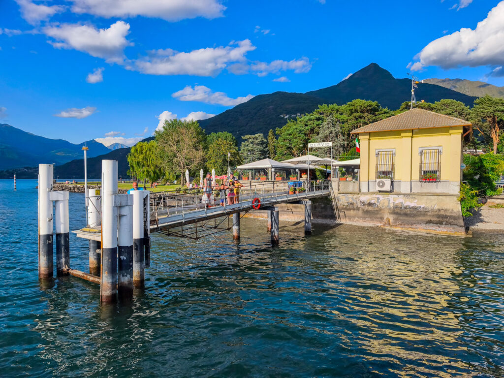 Jako naši základnu jsem zvolila město Dervio na východním břehu jezera, asi 25 kilometrů od Lecca. Ubytování tu vycházelo levněji než v turisticky vyhledávaných obcích ve střední části jezera, zároveň to do nich nebylo daleko. Dervio leží na menším rovinatém výběžku, který tu vytvořil potok Varrone vlévající se do jezera. Je to klidnější obec, kde ale najdete vše potřebné – obchody, restaurace, bary či výbornou zmrzlinu. Jen pozor na odpolední čas siesty, mnoho podniků je odpoledne zavřeno, obvykle zhruba mezi třetí a šestou hodinou (ale to platí i jinde v Itálii). Příjemná je městská promenáda kolem pobřeží, nejvíc se mi líbily procházky na severní straně s báječným výhledem na vysoké alpské štíty.
