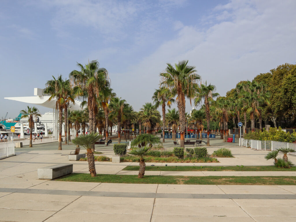 Staré město odděluje od přístavu téměř tři čtvrtě kilometru dlouhý pás zeleně. Parque de Málaga s mnoha cestičkami a místy k odpočinku oceníte především v létě, kdy se tu můžete ve stínu stromů na chvíli schovat před žárem slunce. A hned na park navazuje přístavní promenáda.