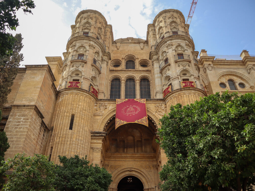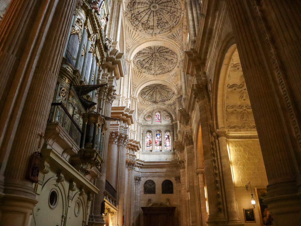 Nejvýznamnější církevní stavbou Málagy je Santa Iglesia Catedral Basílica de la Encarnación (Katedrální bazilika Vtělení svaté církve), nazývaná jednoduše Catedral de Málaga. Její stavba začala v 16. století a trvala 250 let, na fasádě původní renesanční budovy tak jsou vidět četné barokní prvky. Katedrála nebyla nikdy úplně dokončena, konkrétně její jižní věž zůstala vysoká jen 40 metrů, zatímco ta severní se tyčí do výšky 84 metrů. Kvůli této asymetrii se katedrále přezdívá La Manquita (Jednoruká dáma). Uvnitř se skrývá bohatá renesanční výzdoba. Hlavní loď lemují boční lodě a 15 kaplí, každá s jedinečnými uměleckými díly. Nádherné jsou vyřezávané chórové lavice z poloviny 17. století a vzácné jsou i dvojí varhany z 18. století s více než 4 000 píšťalami, které dosud fungují. Skvělým zážitkem je jistě i návštěva střechy katedrály, odkud se naskýtá výhled na celé město. Bohužel ale při našem pobytu probíhala rekonstrukce střechy, takže si musíme tento zážitek nechat na příště.