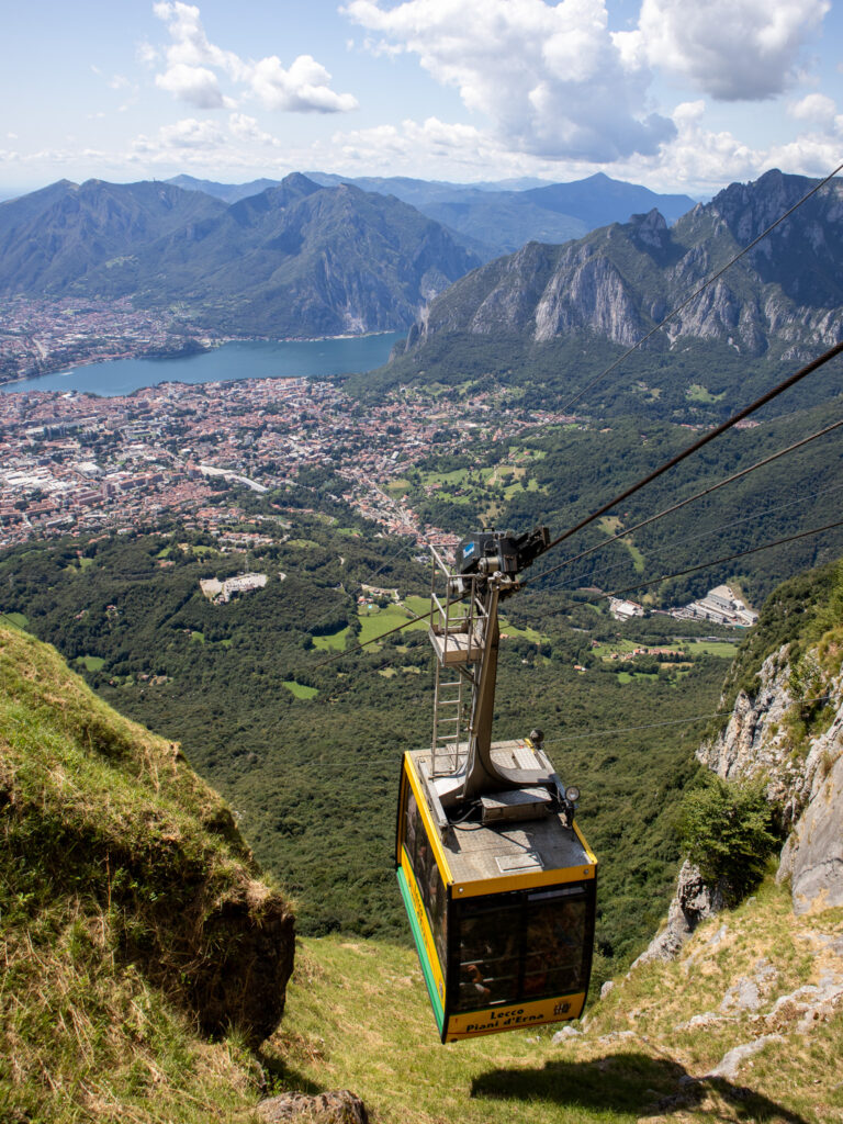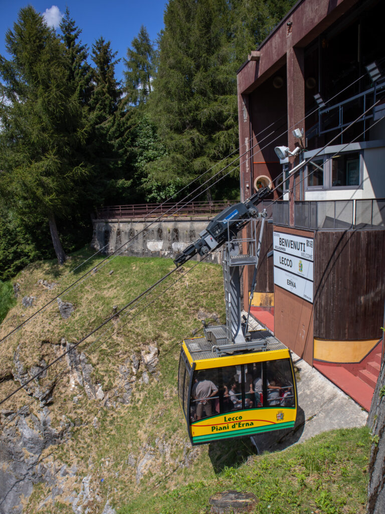 K lanovce Funivia Piani d’Erna se dostanete z centra Lecca autobusem č. 5, my jsme nastoupili na zastávce Montello u hlavního vlakového nádraží. Cesta odtud trvá zhruba půl hodiny na konečnou zastávku u nástupní stanice lanovky. Tady se nachází i parkoviště, pokud byste sem vyrazili autem. Kabinová lanovka Funivia Piani d’Erna byla vybudována v roce 1965, v roce 2008 pak byla po rekonstrukci znovu uvedena do provozu. Během několika minut vyveze cestující z výšky 602 m n. m. do výšky 1330 m n. m. a už cestou se z ní naskýtají úžasné výhledy. Krásná vyhlídka se nachází také hned u horní stanice lanovky.