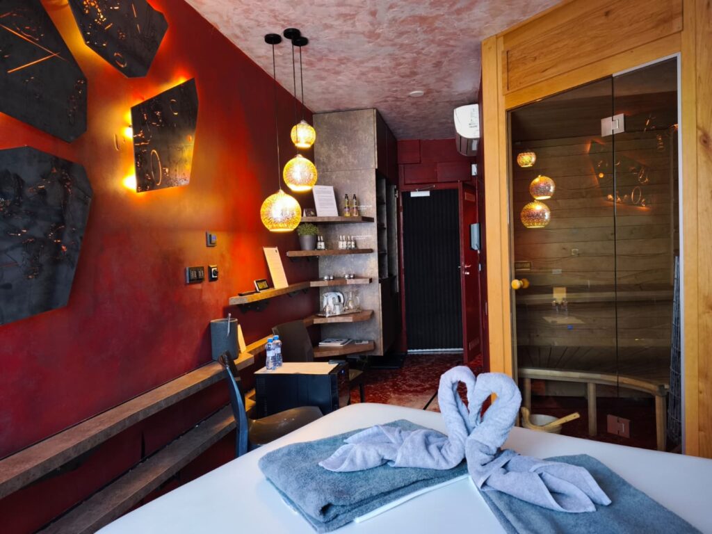 Třešničkou na dortu vašeho pobytu může být skvělý relax v privátní wellness sauně. Intimní prostředí s erotickými lampami na zdi je ideální pro společné chvíle s partnerem, v sauně je tak akorát prostoru pro dva. A pokud potřebujete uvolnit svaly a napravit bolavá záda, můžete si objednat klasickou nebo rekondiční masáž z rukou zkušeného fyzioterapeuta.