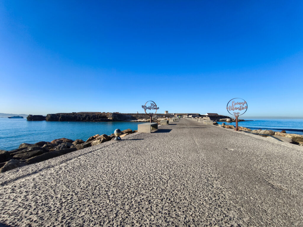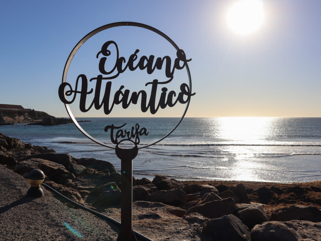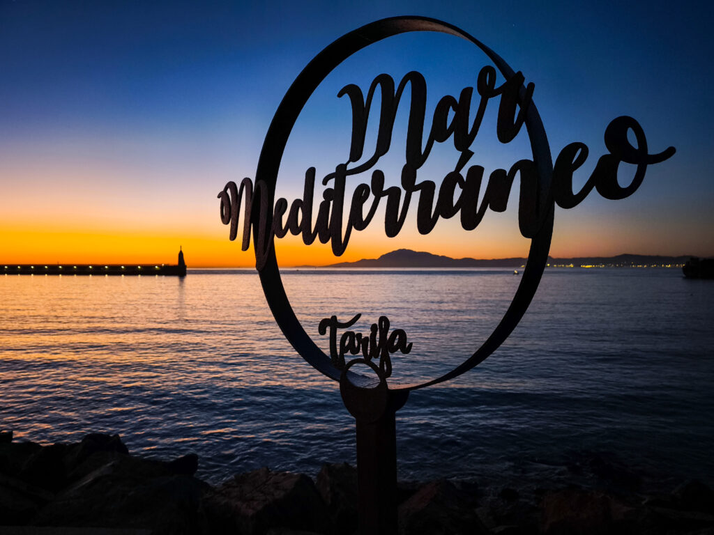 Tarifa je také místem, kde se setkávají vody Středozemního moře a Atlantského oceánu. Z geografického hlediska se za hranici mezi Středozemním mořem a Atlantikem se považuje právě linie mezi Tarifou a marockým mysem Spartel u Tangeru. Zcela jasně a srozumitelně tuto skutečnost připomínají moc pěkné cedule „Mar Mediterráneo“ a „Océano Atlántico“ na hrázi vedoucí k Isla de las Palomas. Cedule patří k nejznámějším a nejfotografovanějším místům v Tarifě, rušno je u nich během dne a obzvlášť pak večer při západu slunce. Není divu, zapadající slunce v pozadí dodá atlantické ceduli opravdu fotogenický dramatický vzhled. Krásně se odtud ale pozoruje i východ slunce nad Středozemním mořem, na který jsem tu naopak čekala téměř sama.