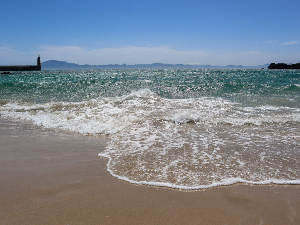 Ačkoliv jsou krásná pláž a Atlantský oceán zdejšími lákadly, pro běžné koupání tu nebývají vždy dobré podmínky, vlny jsou kvůli větru někdy dost nepříjemné. Samozřejmě i tady je občas téměř bezvětří, to jsme tu zažili první odpoledne našeho krátkého pobytu. Koupání bylo fajn, i když vlny Atlantského oceánu i tak občas překvapily. Středozemní moře u Playa Chico ale bylo úplně klidné. Druhý den už foukalo více a vlny se zvedaly u obou pláží. Třetí den dopoledne jsme koupání i samotný pobyt na pláži po malé chvíli vzdali, protože kromě ještě bouřlivějšího moře hnal silný vítr jemný písek tak prudce, že na kůži až nepříjemně štípal. To už totiž vítr Levante přišel v plné síle.