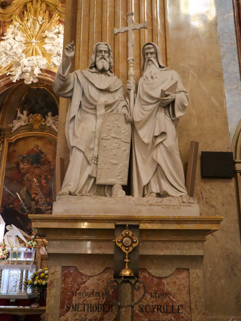 S působením Cyrila a Metoděje jsou spjatá i další místa na jižní Moravě, která rozhodně doporučuji navštívit. Podle legend křtili tito věrozvěstové pohanské obyvatelstvo ve Křtinách, které jsou dnes také významným poutním místech a jejich dominantou je nádherný kostel Nanebevzetí Panny Marie podle návrhu architekta Jana Blažeje Santiniho. A v benediktinském klášteře v Rajhradě se nachází Památník písemnictví s ukázkami hlaholice.