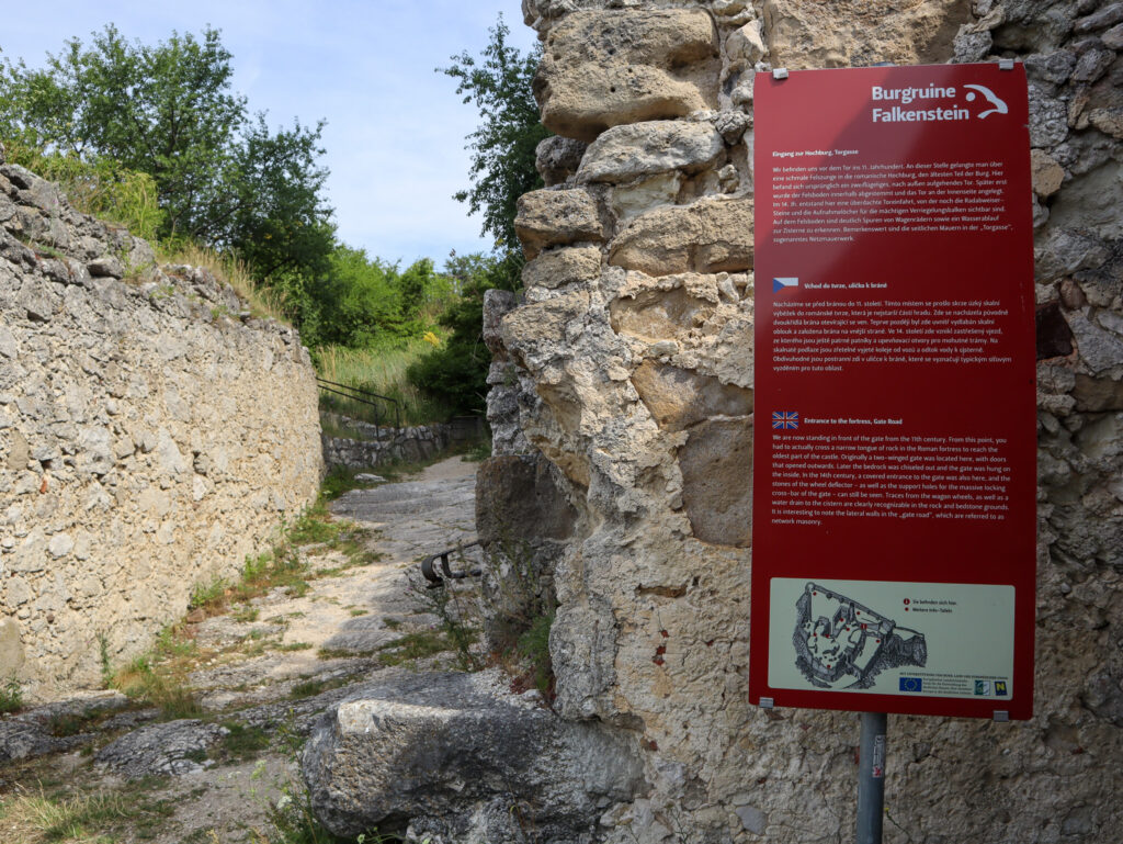 Zřícenina Falkenstein se nachází v Dolním Rakousku nedaleko hranic s Českem, nad obcí Falkenstein v oblasti Weinviertel. Z jižní Moravy je to sem jen krátký výlet, například z Mikulova měří cesta autem jen zhruba 15 kilometrů. Nejčastější trasa vede přes hraniční přechod Drasenhofen, odkud pokračujete přes rakouské vesnice až přímo pod hradní kopec. Tady se nachází dvě velká bezplatná parkoviště, jedno z nich je i pro karavany.